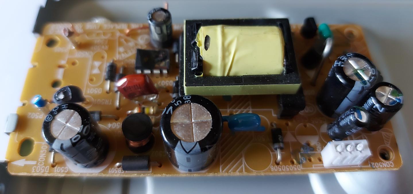 - The soldered component pins of the PSU PCB were just